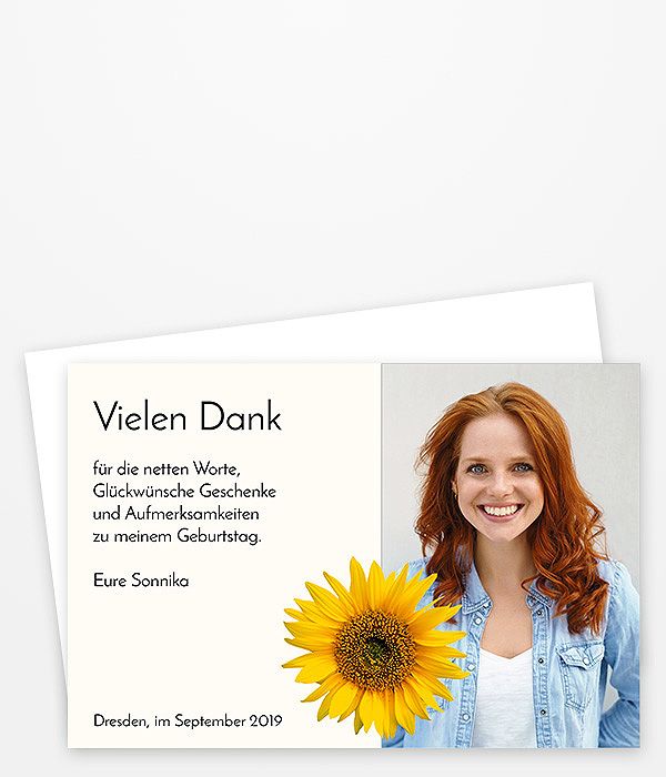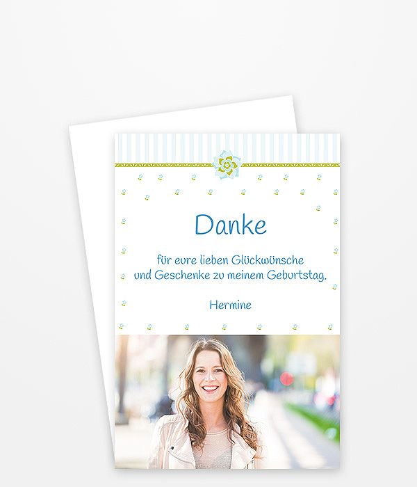 Mit schönen Danksagungen zum Geburtstag schenken Sie Freude zurück. Tolle Motive einfach online gestalten.