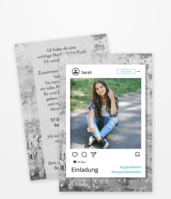 Einladungen zur Jugenweihe mit jugendlichen Motiven